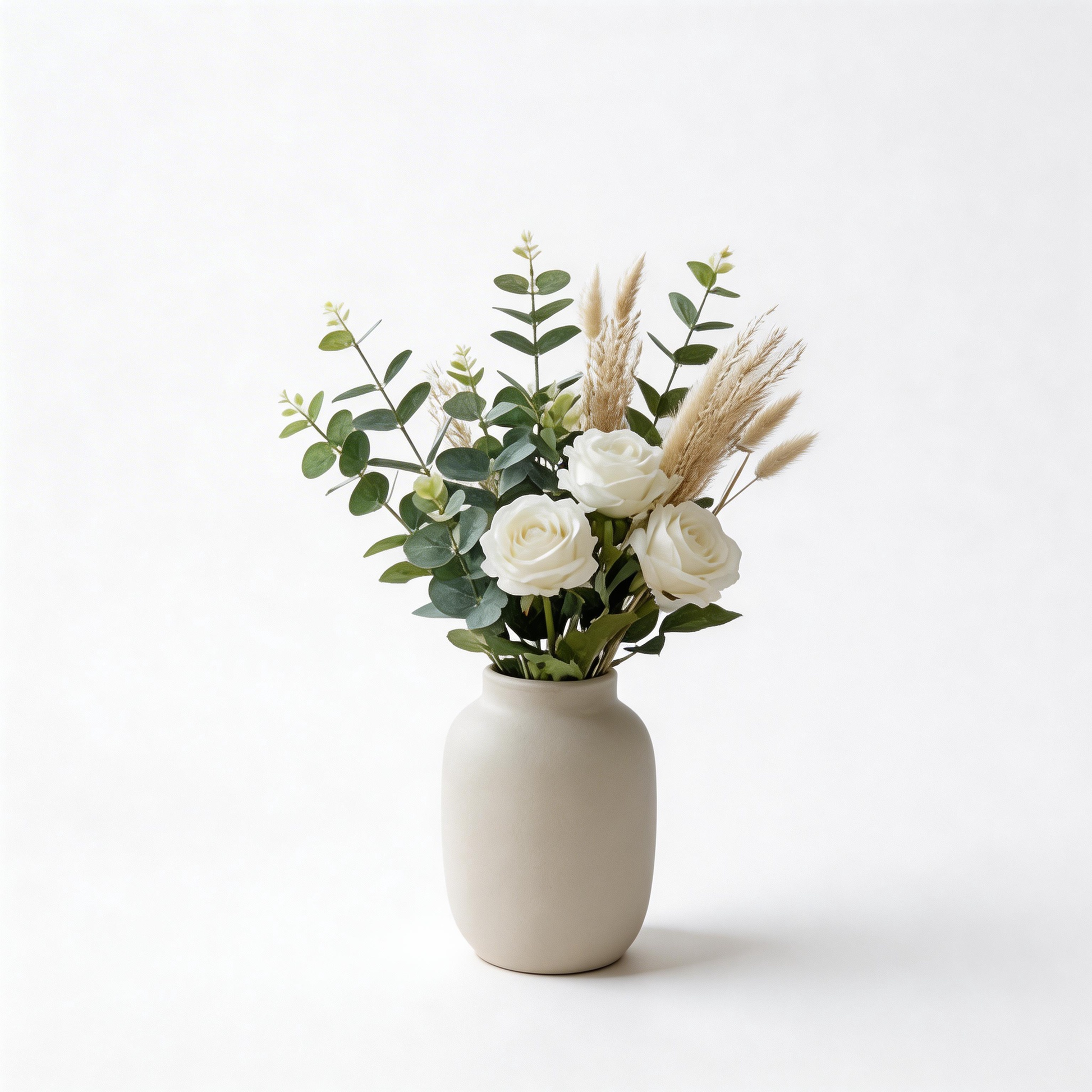 Elegant White Rose & Pampas Grass Arrangement – Timeless Beauty for Every Home